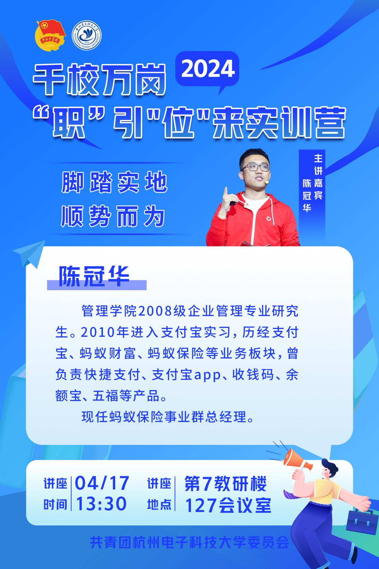主讲人:陈冠华,我校管理学院2008级企业管理专业研究生。2010年进入支付宝实习,历经支付宝、蚂蚁财富、蚂蚁保险等业务板块,曾负责快捷支付、支付宝app、收钱码、余额宝、五福等产品,现任蚂蚁保险事业群总经理。