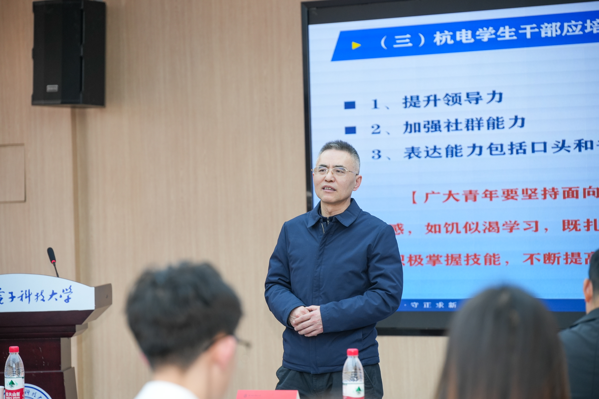 王兴杰强调,2023年是我们迈入新时代新十年的起步之年,是举国上下学习贯彻党的二十大精神的开局之年,是我省实施“八八战略”二十周年,是我们疫情基本结束各项工作步入正常的一年,也是国际形势风云变幻、科技发展迅速的一年。面对新时代、新形势,新青年面临着前所未有的新目标、新使命。大学生要坚定中国特色社会主义伟大事业必胜信念;青年学生要坚守在中华民族伟大复兴事业中的重大使命,进一步坚定理想信念、练就过硬本领、塑造创新精神、矢志艰苦奋斗、锤炼高尚品格、提高艺术修养。最后,王兴杰教导全体学生干部,应不断提升领导力,加强社群能力,培养口头和书面表达能力。广大青年要坚持面向现代化、面向世界、面向未来,增强知识更新的紧迫感,如饥似渴学习,既扎实打牢基础知识又及时更新知识,既刻苦钻研理论又积极掌握技能,不断提高与时代发展和事业要求相适应的素质和能力。