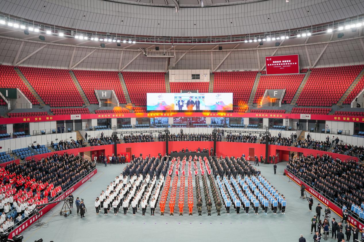 3月7日,“我爱杭州 奉献亚运”杭州市全民亚运誓师动员大会在杭州奥体中心网球中心举行。大会以“主会场+分会场”方式举行,同步连线亚运观赛空间户外大屏,共一万余人参加。会前,省委书记易炼红、省长王浩对本次活动作出批示。省委常委、市委书记刘捷出席作动员讲话,并带领全体参会人员庄严宣誓。活动现场发布了“我爱杭州 奉献亚运”主题活动内容,并启动“我爱杭州 奉献亚运”主题活动暨全民亚运志愿行动。