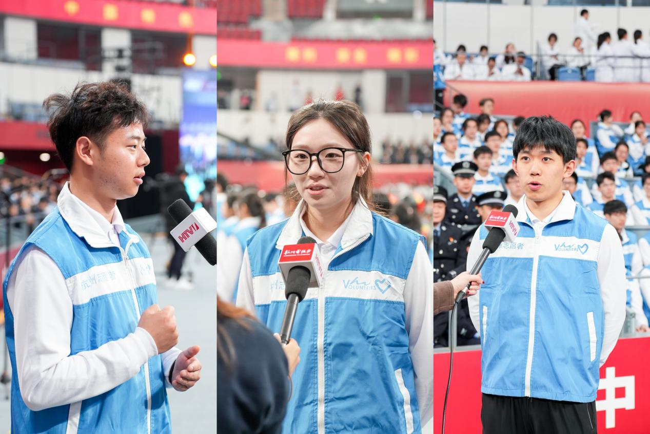 预录用赛会志愿者,电子信息学院丁彦凯、周景川同学,经济学院王小堂同学在誓师动员大会现场分别接受了杭州电视台、钱江频道等媒体记者的采访。同学们纷纷表示:能参与杭州亚运会、亚残运会的赛会志愿服务,不仅是一次难得的机会,更是一种对自己的挑战和锻炼,誓师大会让我们感受到了杭州为举办亚运作出的全方位努力,这让我们热血沸腾。我们一定会认真参加各类培训演练,努力提高自己的专业素养,用最专业周到的志愿服务,最好的精神面貌去迎接各方朋友,展现杭电魅力!
