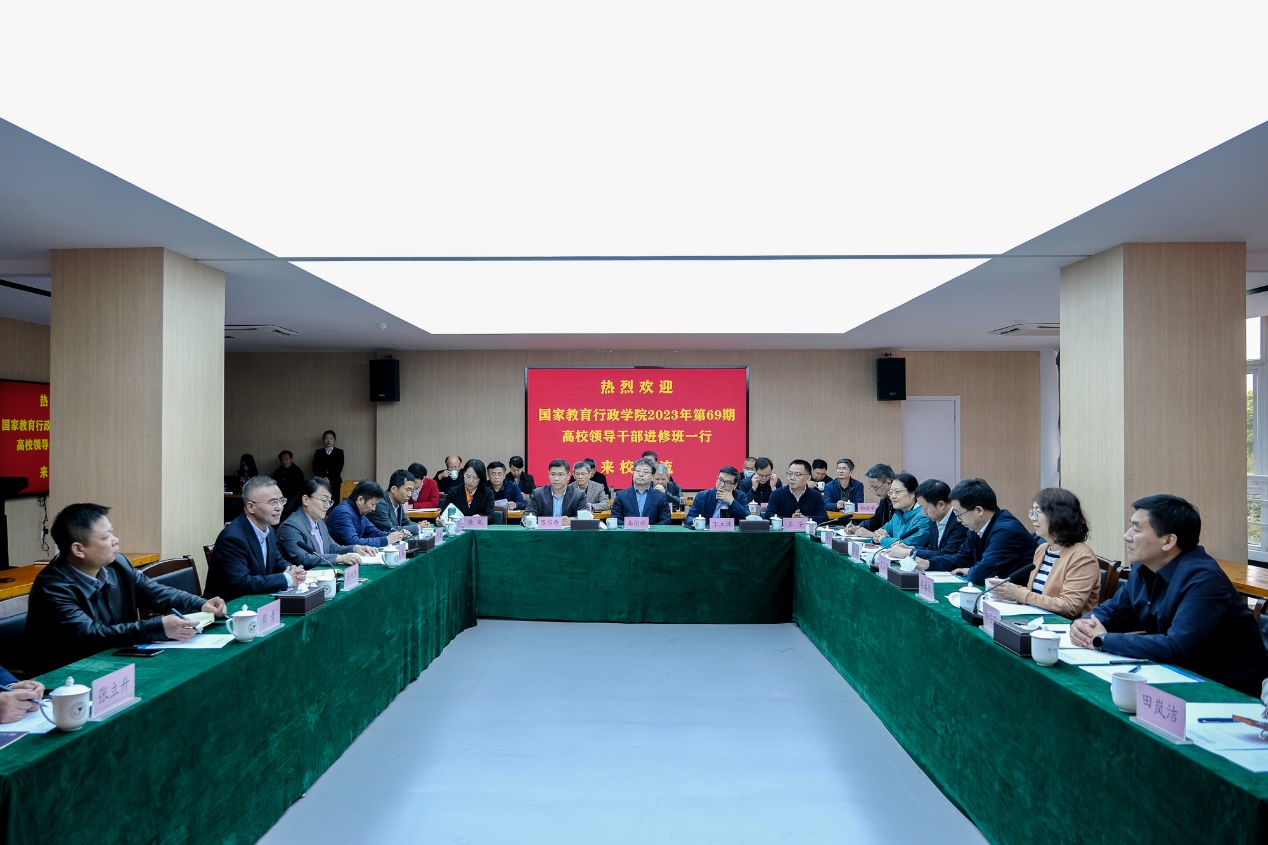 3月23日上午,国家教育行政学院第69期高校领导干部进修班来校调研,国家教育行政学院考察团团长、西南大学副校长赵国华带队,我校党委书记王兴杰、党委副书记钱波陪同调研。