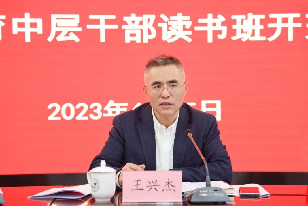 王兴杰传达了省委书记、省委主题教育领导小组组长易炼红关于“拓展主题教育良好态势,既要强化思想引领也要强化实际导向,学要学出色、学到最深处;干就干出彩、干到最前列;考就考出效、考到最严时”的指示精神。对办好中层干部主题教育读书班提出三点希望:一是要通过深学细悟,切实把思想认识凝聚到学校中心工作上来。把习近平新时代中国特色社会主义思想转化为坚定理想、锤炼党性和指导实践、推动工作的强大力量,把全校师生党员凝聚到以数字赋能推动学校各项事业发展和高质量落实好主题教育“十大提升工程”上来,自觉扛起在“实干担当促进发展”上走前列、作示范的政治担当。二是要通过广泛调研,切实把影响和制约学校发展的突出问题查找出来。各二级单位党政班子成员要紧紧围绕学校建设发展大局,结合本单位实际情况,采取多种形式,认真组织开展调查研究,切实把影响本单位学科建设、专业发展、人才培养等科学发展的问题分析梳理出来,把创新理念、对策建议归纳总结出来。三是要通过边学边改,切实把解决问题的工作思路超前谋划出来。要把读书班学习成效同解决实际问题结合起来,对照调查研究发现的问题、推动发展中的问题、群众反映强烈的问题,尽快形成问题清单。在学习过程中注重找寻有利于解决实践问题、破解制约工作发展的思想方法,在实践中进一步转化学习成效。