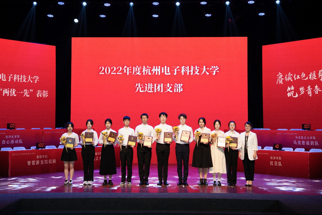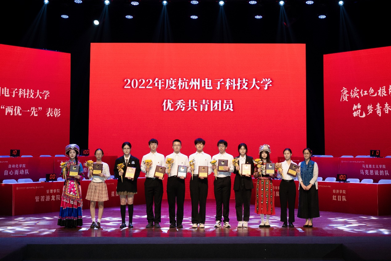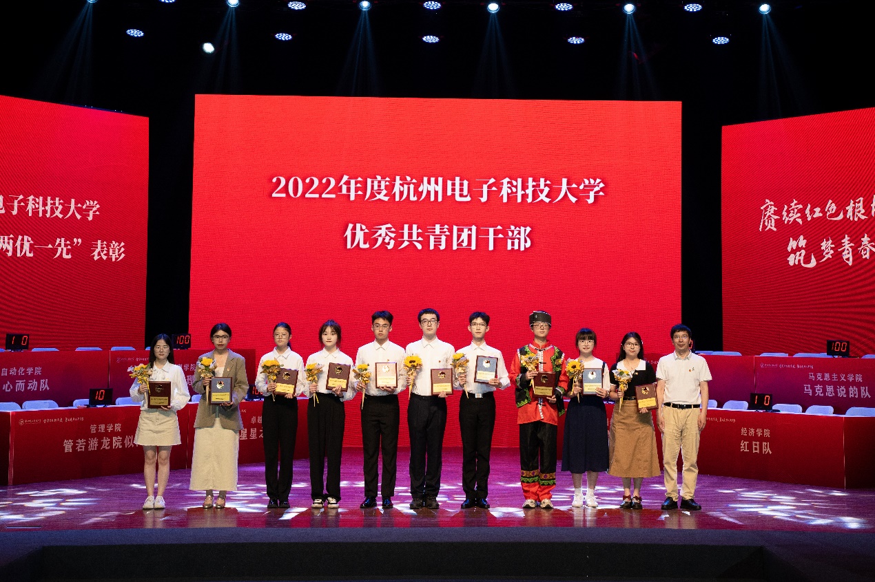 活动现场,颁发了2022年度校“青年大学习”组织工作奖,并对2022年度校先进团支部、优秀团干部及优秀团员进行了表彰。