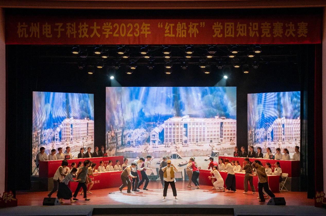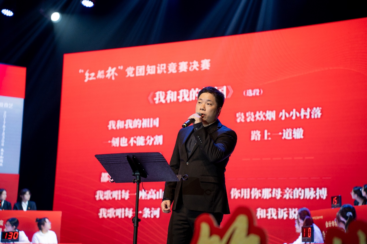 在“信仰感动中国”剧场题环节,校大学生艺术团清影舞队现场演绎原创舞剧《无名的功勋》,围绕新中国成立前后我党隐蔽战线的传奇故事进行答题。在“理想照耀中国”视频题环节,聚焦庆祝中国共产党成立100周年主题作品《理想照耀中国》,学习了我国建设发展各阶段国防军工、医疗卫生、乡村振兴等领域功勋人物的丰功伟绩。在“歌声传颂中国”歌词接唱抢答环节,校艺术教育中心教师现场领唱《长城谣》《英雄赞歌》《东方之珠》等革命战争和建设时期以及新时代的主旋律歌曲,对参赛团队进行考查。在冠亚季军争夺赛中,选手们以习近平新时代中国特色社会主义思想、党的二十大精神、“八八战略”为主题展示了微团课。
