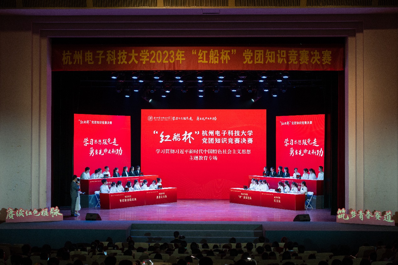5月6日下午, 2023年“红船杯”党团知识竞赛决赛——学习贯彻习近平新时代中国特色社会主义思想主题教育专场在学活剧院举行。校党委副书记钱波,校党委委员、宣传部部长戚明钧,以及学工部、研工部、团委等职能部门负责人,相关学院学生工作负责人,各学院团学骨干和团员青年代表800余人出席。
