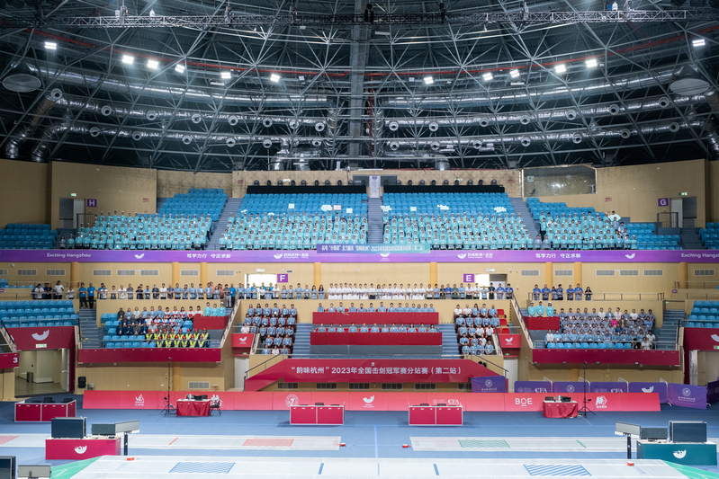 “韵味杭州”2023年全国击剑冠军赛分站赛(第二站)作为杭州亚运会击剑测试赛,是检验场馆亚运筹办工作进展与场馆运行团队办赛水平的一次“大考”,各项工作按照亚运流程进行筹办,以近亚运水平进行全要素测试。