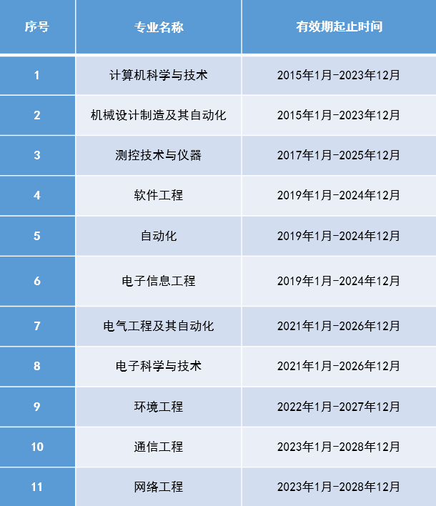 近日,中国工程教育专业认证协会发布《关于公布天津工业大学机械工程等441个专业认证结论的通知》,经过申请审核、学校自评、专家组在线考查、结论审议等程序,我校通信工程、网络工程2个专业顺利通过认证,有效期为6年(2023年1月至2028年12月)。目前,我校共有11个专业通过工程教育专业认证。此外,测控技术与仪器专业通过工程教育认证中期审核,继续保持有效期(2020年1月至2025年12月)。