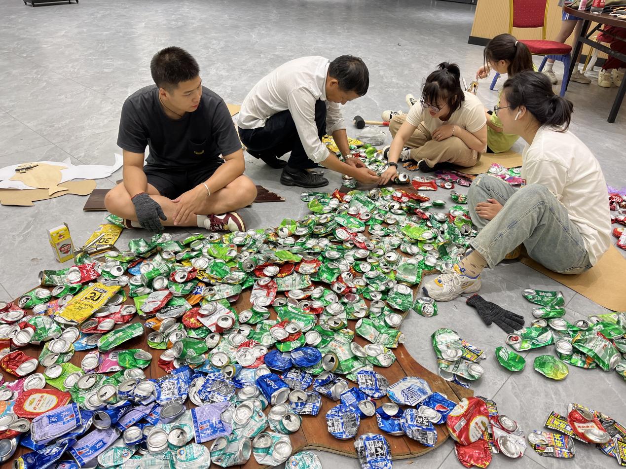 “花开贤庠 渔你有约”艺术实践团通过废弃物再利用,创作海洋鱼群艺术装置,打造乡村特色记忆点