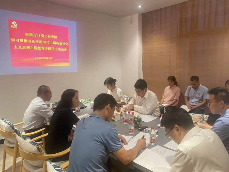 根据中央、省委和学校党委关于主题教育专题民主生活会的部署要求,8月31日晚上,材料与环境工程学院党委召开学习贯彻习近平新时代中国特色社会主义思想主题教育专题民主生活会。副校长马国进、学校办公室干部姜彩虹到会指导。会议由学院党委书记沈莉主持,全体党政领导班子成员参加会议。