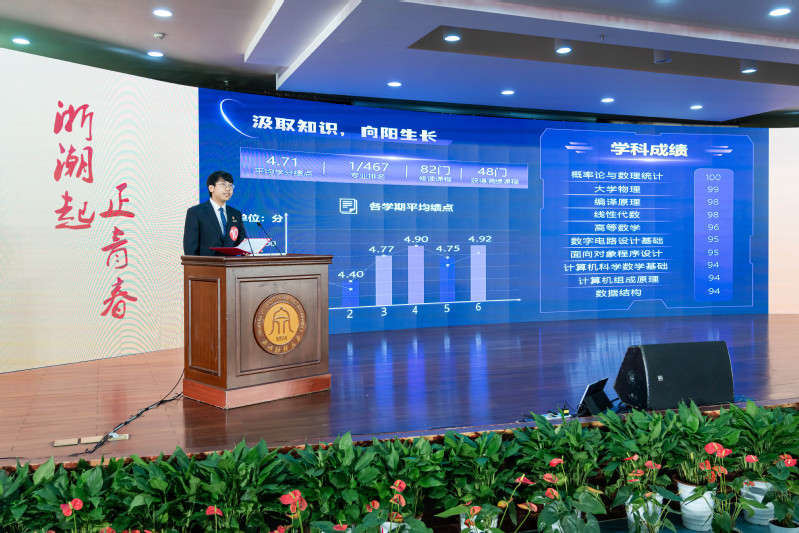 我校卓越学院2020级智能计算与数据科学创新实验班的赵政和凭借优异的学习成绩、丰硕的竞赛成果,通过视频展示,个人展示和即席演讲三个环节的风采展示,讲述了他心怀报国志,以成为拔尖创新人才为目标,笃学力行,48门课程获得满绩;在ACM大学生程序设计竞赛中获得国家级金奖12项并入围全球总决赛;不忘初心,砥砺前行,保研至浙江大学攻读博士研究生学位,将在人工智能前沿领域深度挖掘,力争突破“卡脖子”难题的故事,最终斩获浙江省普通本科高校国家奖学金特别奖,这是我校学生连续四年获得该项荣誉。