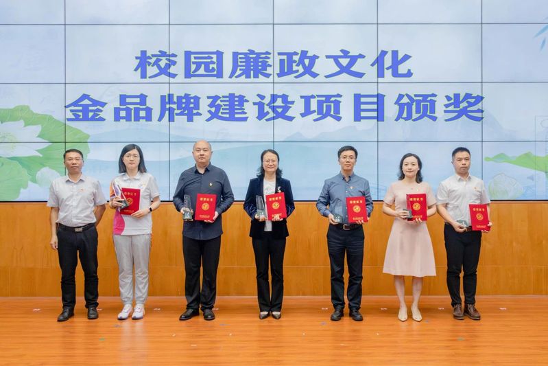 仪式上,校纪委书记牛东红、校纪监办主任张武标、校党委宣传部副部长伍超分别为廉政文化金品牌、金品牌建设项目、金品牌培育项目获奖项目颁发奖杯和证书。