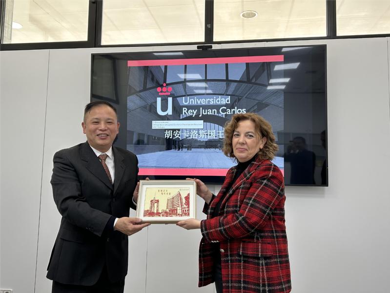 在西班牙胡安·卡洛斯国王大学,杨勇一行与主管国际化的副校长María Luisa Humanes女士、国际处负责人Pablo T. Salvadores Alonso以及中国事务办公室负责人Zhe Lin博士。双方讨论了续签合作协议的具体细节,并就进一步深化合作、增加师生互派、加强语言教学交流、管理学硕士联合培养等方面达成一致。