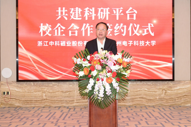 吴中平董事长对中科磁业有限公司和杭电共建科研平台表示热烈欢迎。他说,这是双方酝酿已久的重要举措,旨在促进学校和企业之间的产学研深度合作,提高科研水平和创新能力,推动科技成果转化与推广,培养更多具备实践能力和创新精神的高素质人才,服务地方社会与经济发展。