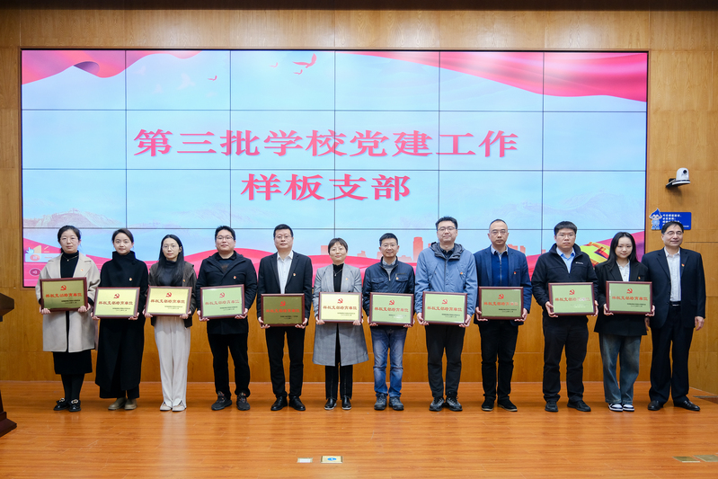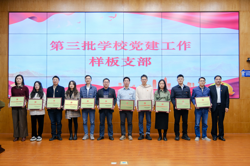会上宣读了《学校党建“双创”培育创建单位》文件,颁授了学校党建工作“标杆院系”“样板支部”“研究生样板支部”“研究生标兵”标牌和证书。