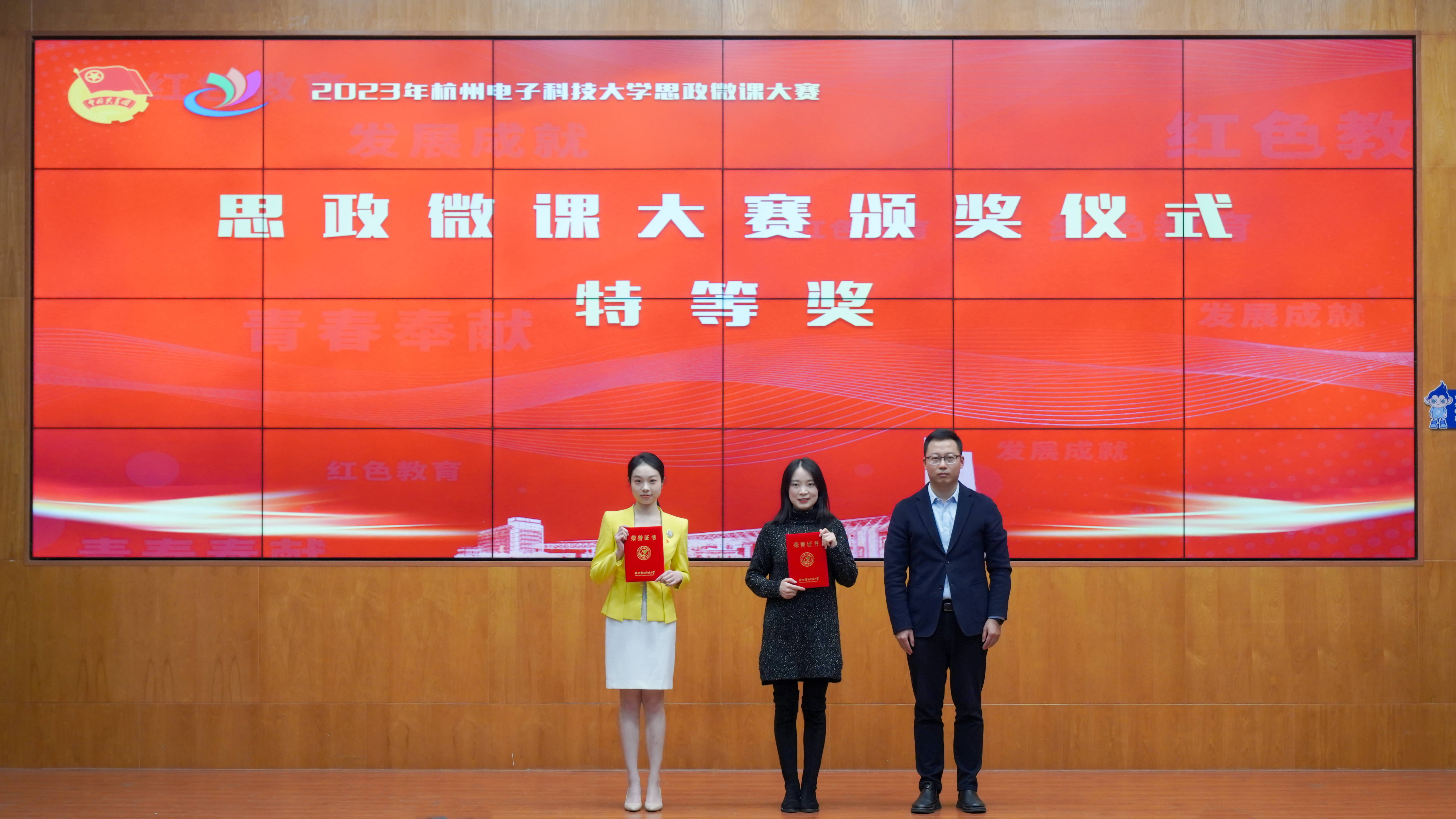 经过激烈角逐,最终,学校办公室雷哲超获教师组特等奖;电子信息学院许奕韬、机械工程学院张金龙获教师组一等奖;人文艺术与数字媒体学院、法学院金琳、外国语学院罗庆、电子信息学院沈峰、通信工程学院黄笑眉、经济学院史维、通信工程学院李鑫瑶、人文艺术与数字媒体学院、法学院赵金瑞、管理学院胡陈思、电子信息学院张丹琦获教师组二等奖。