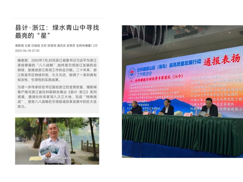 研究院首席专家辛金国教授团队深入开展社科赋能行动,助力山区(海岛)县共同富裕,仅2023年深入调研达30余次,总结提炼推广山区县跨越式高质量发展经验、发展路径研究,建言献策。2023年度共获浙江省社科规划“社科赋能行动”专项课题(预)立项6项,4篇研究报告获得省市领导肯定性批示。出版专著《浙江省山区共同富裕先行地的探索与实践——开化县金星村样本研究》,由浙江省社科联党组书记、副主席郭华巍作序,先后被中国日报网、中国新闻网等主流媒体关注并播报。专著《数字经济推动城乡融合高质量发展》,获得浙江省哲学社会科学优秀成果二等奖。
