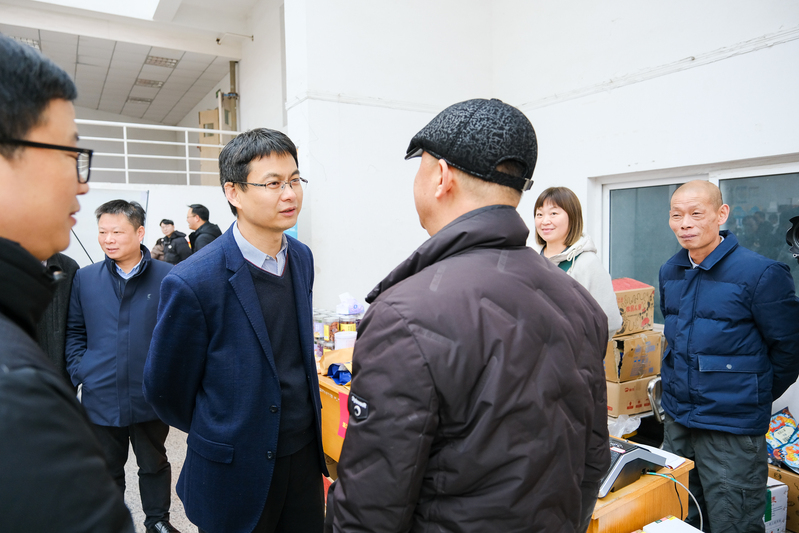 年货节第一天,校党委书记吴卿、党委副书记钱波、纪委书记任蔚青、副校长周青和相关部门负责人来到活动现场,询问了解参展企业产品和销售情况,并现场挑选购买年货。