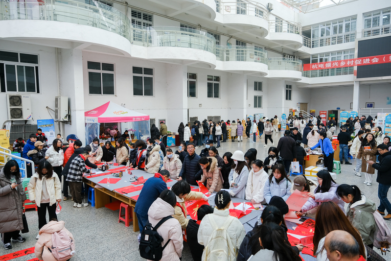 另一头,浙江省教育书法协会与校教职工书法俱乐部的老师们挥毫泼墨,为师生们送上寓意吉祥的春联和诚意的祝福。师生或前来领取春联和福字,或在书法体验区书写福字,将祝福融入到一笔一画之中。散发着淡淡墨香的春联和福字蕴含着学校对师生们的美好祝愿,也传承和弘扬着中国的传统文化。