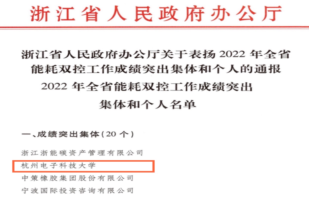 近日,浙江省人民政府办公厅下发《关于表扬2022年全省能耗双控工作成绩突出集体和个人的通报》,我校成功获评浙江省能耗双控工作成绩突出集体,这是继我校“绿色低碳校园”应用场景被杭州市双碳办评选为2023年度“杭州市十大低碳应用场景”之一,和我校“绿色低碳校园”项目被省建设厅评为“2023年度建筑领域碳达峰相关工作优秀案例”之后的又一阶段性成果。