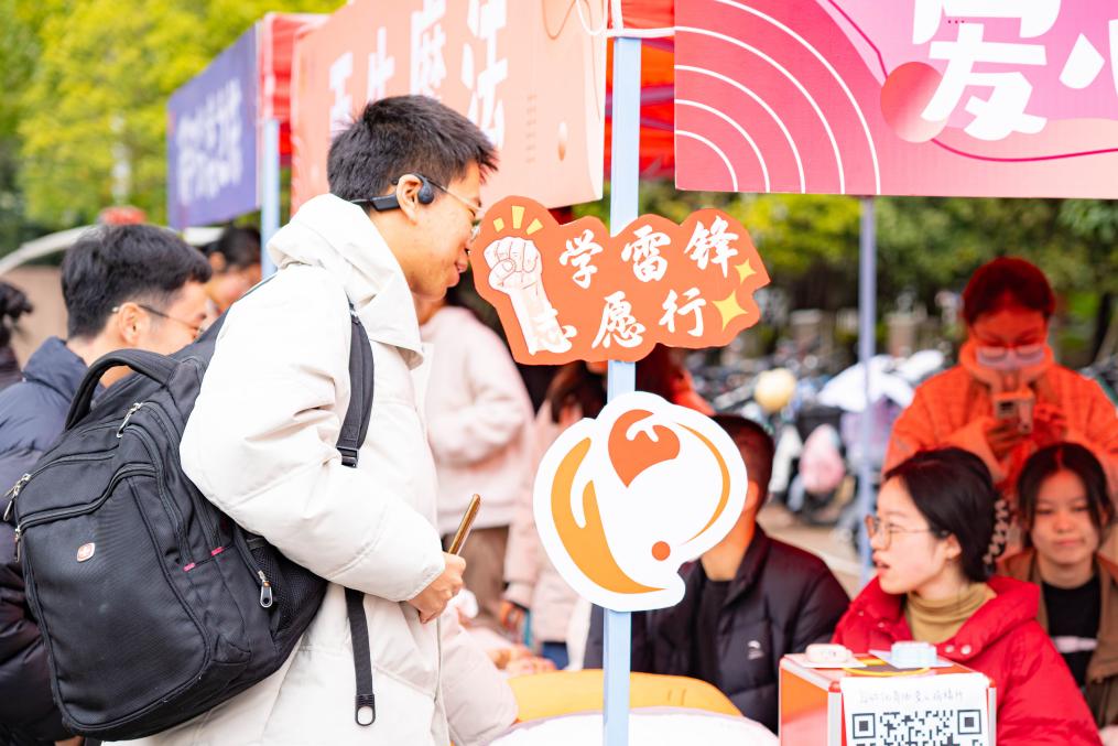 这天,是第 61 个全国“学雷锋纪念日”、第 25 个“中国青年志愿者服务日”。学校启动 2024 年度“青春‘志’行,追‘锋’正当时”主题志愿服务专项行动,开展“向雷锋同志学习”“‘青’力出击·与你同行”“志愿故事我来讲”等系列专题活动,引导广大青年志愿者在志愿奉献中锻炼自我、播撒温暖、服务社会,让学雷锋活动融入日常、化作经常,助力深化“浙江有礼”省域文明新实践。