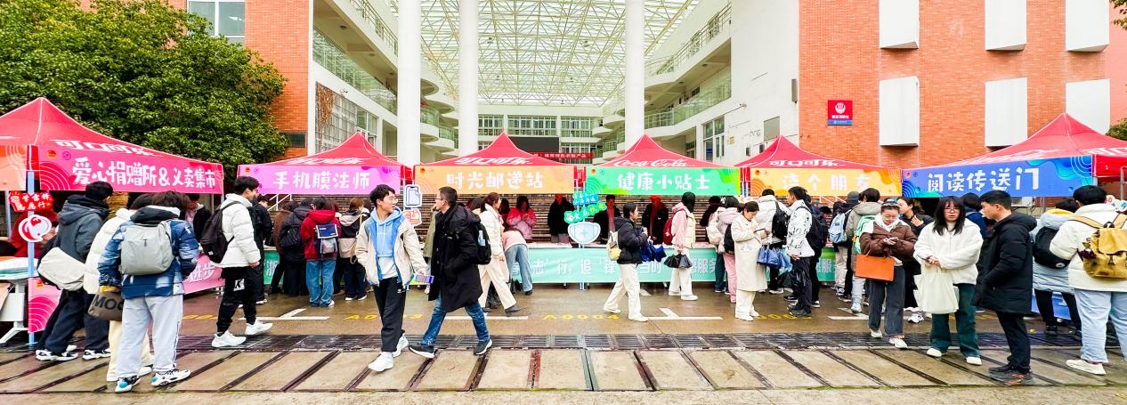 各个展位上,“时光邮递站”“阅读传送门”“健康小贴士”“再生魔法”“循坏分类之旅”“爱心捐赠所”“慈善义卖集市”“浇个朋友”“手机膜法师”等志愿服务活动活动受到同学们的欢迎和踊跃参加,大家纷纷在各个“爱心市集”前写下以物换物,学习流感预防、垃圾分类等科普知识,构成了春“锋”里一道亮丽风景线。
