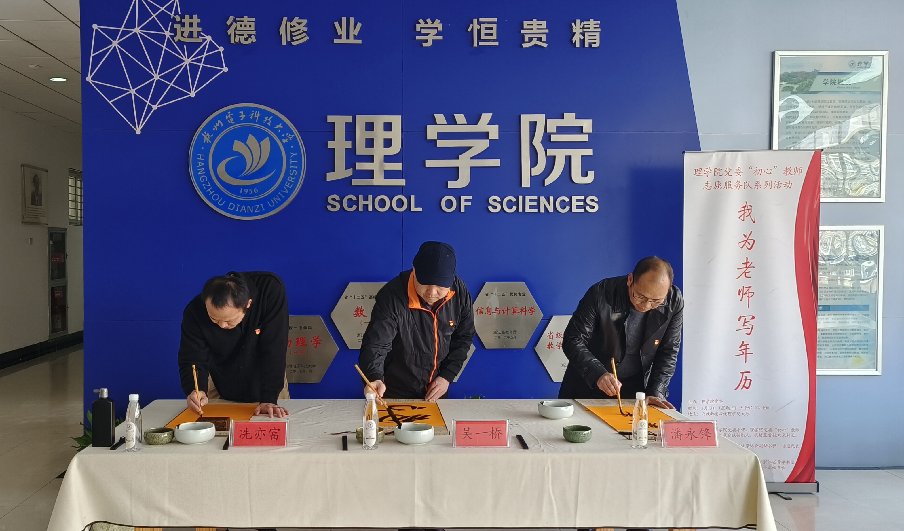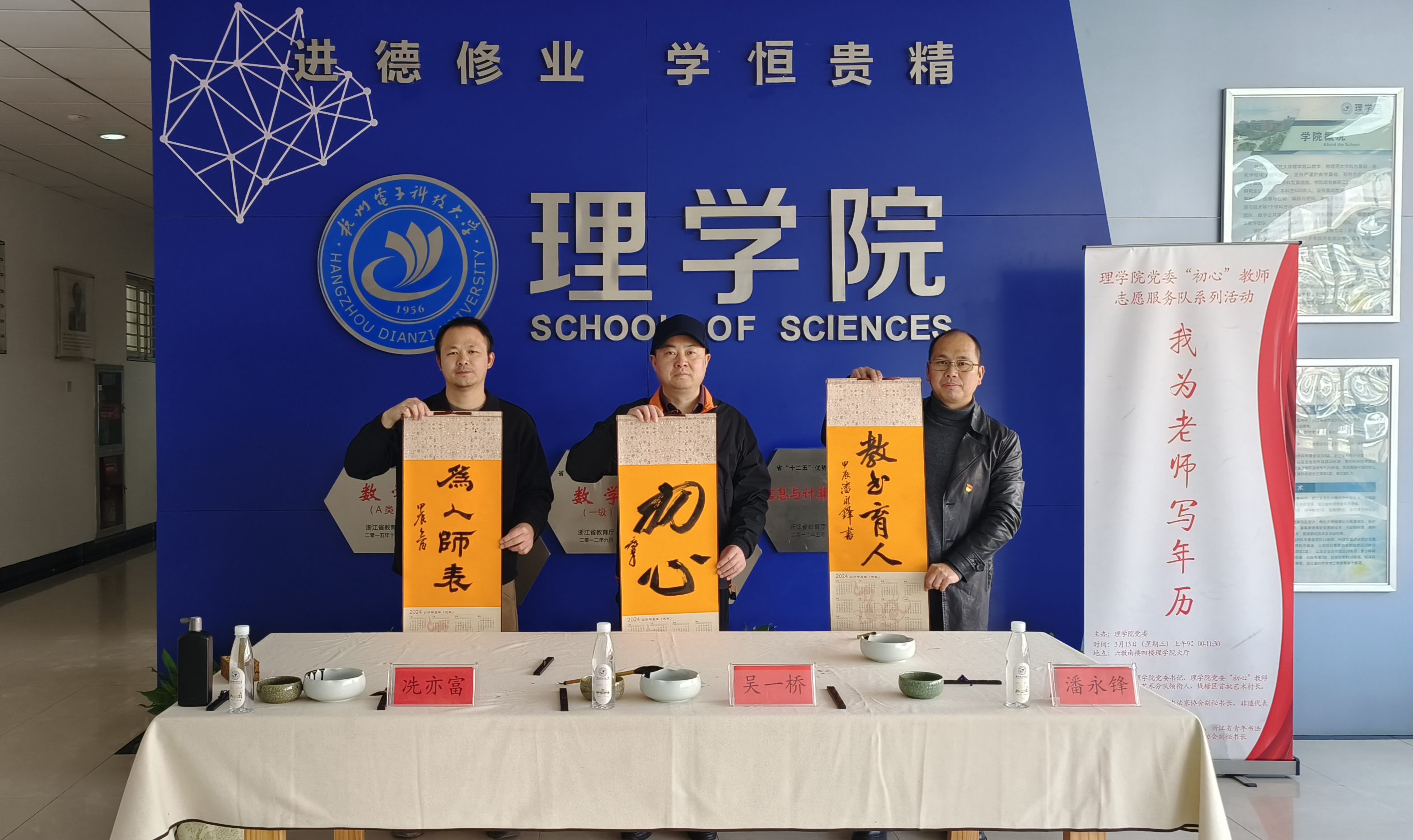 3月13日上午,理学院党委“初心”教师党员志愿服务系列活动首场活动“我为老师写年历”在理学院大厅举行。“初心”志愿服务队书法艺术分队领衔人、理学院党委书记吴一桥带领书法家志愿者团队,义务书写并向师生赠送年历。