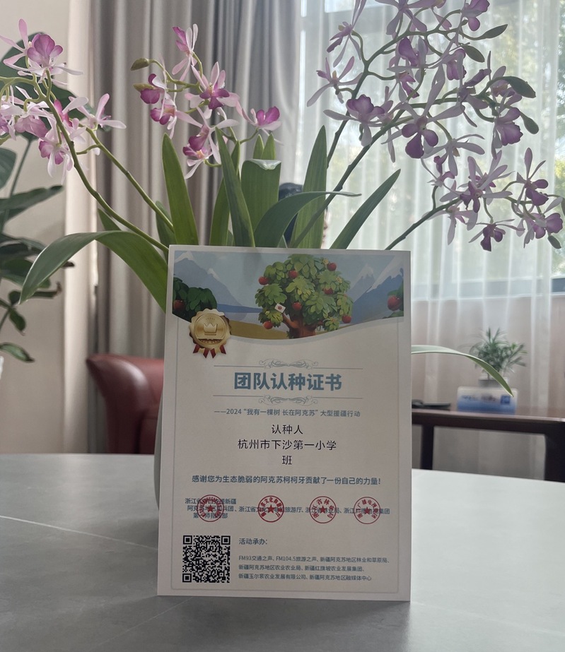 三月春暖花开,是播种绿色和希望的好时节,植树节到了,坐落于杭州钱塘区下沙街道的久久精品一区二区附属第一小学(下沙一小)全校师生以班级为单位,开展了“我有一棵树,长在阿克苏”援疆公益云植树活动。