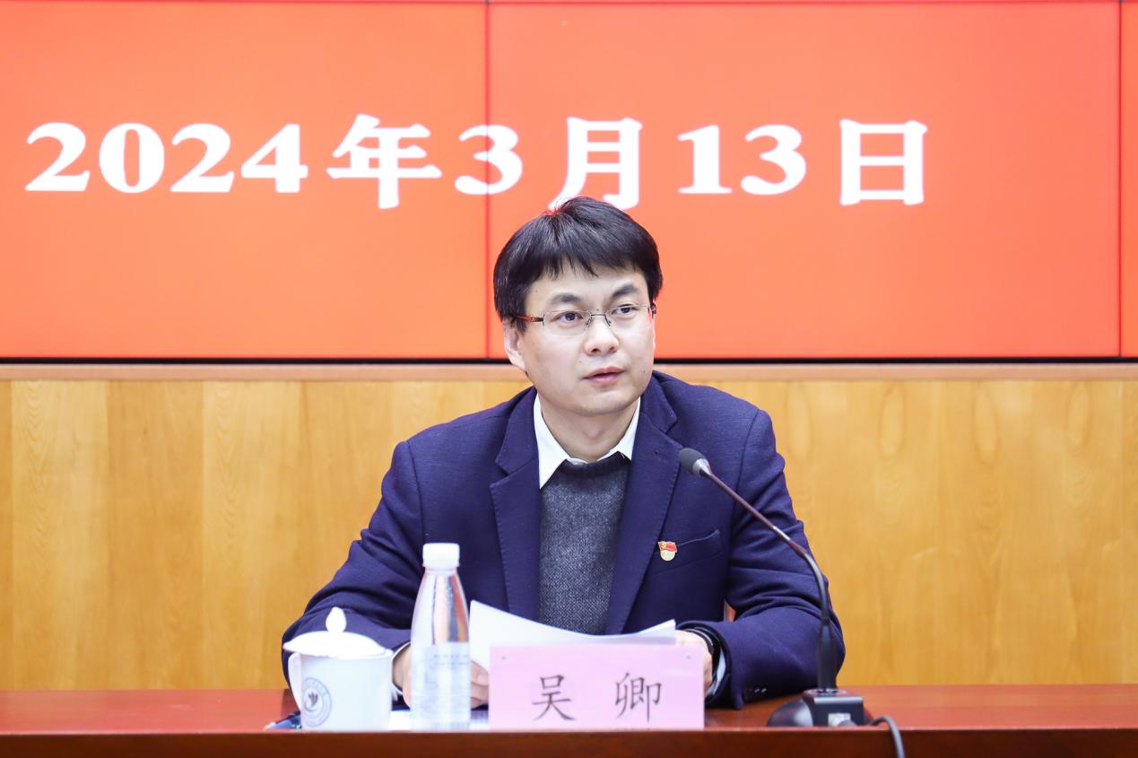 吴卿介绍了此次大会的指导思想和主要任务,并就开好党代会提出三点要求。一要提高站位、凝聚共识,充分认识召开党代会的重要意义。开好党代会,是深入贯彻落实党的二十大精神,助力建设教育强国的必然要求;是落实省委决策部署,勇当先行者,谱写新篇章的必然要求;是进一步集中各方智慧、全面激发生机活力、实现学校高质量发展的必然要求。二要系统谋划、精心组织,确保党代会各项筹备工作顺利开展。谋篇布局、聚智聚力,高质量起草“两委”工作报告;充分酝酿、发扬民主,认真负责地做好党代表选举;坚持标准、规范程序,切实做好“两委”委员候选人推荐。三要广泛动员,严肃纪律,全力以赴开好第四次党代会。加强组织领导,做好思想动员,以高度的政治责任感迎接第四次党代会的召开;坚持民主集中制,严肃纪律规矩,营造风清气正的政治生态;坚持实干笃行,统筹兼顾,把迎接党代会的召开和推动事业发展紧密结合起来,做到“两不误,两促进”。