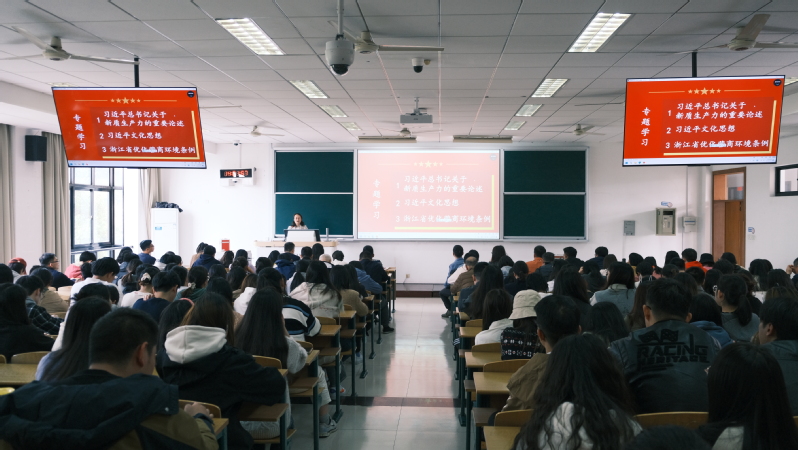 大会上,学院党委书记郑海味给全体与会党员上党课,集中学习了习近平总书记关于新质生产力的重要论述、习近平文化思想以及《浙江省优化营商环境条例》。她勉励大家要齐心协力、携手奋进、勇于争先、砥砺前行,在学校推进高水平大学建设和争创“双一流”建设中贡献智慧和力量;学院纪委书记连升炯带领全体师生党员一同观看廉政警示教育专题纪录片。他号召全体党员要以案为鉴,警钟长鸣,时刻保持清醒头脑,把廉洁自律内化于心、外化于行。