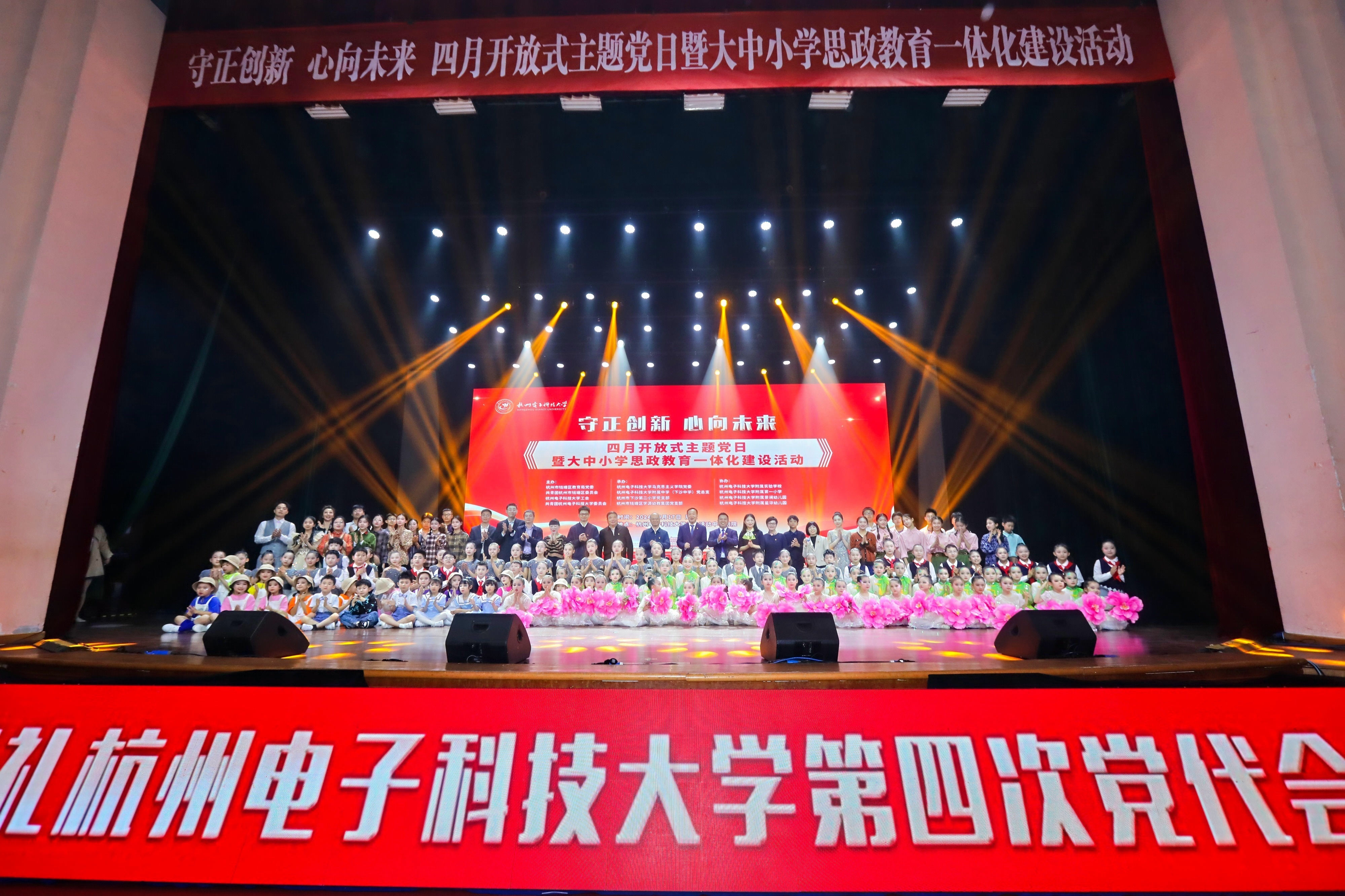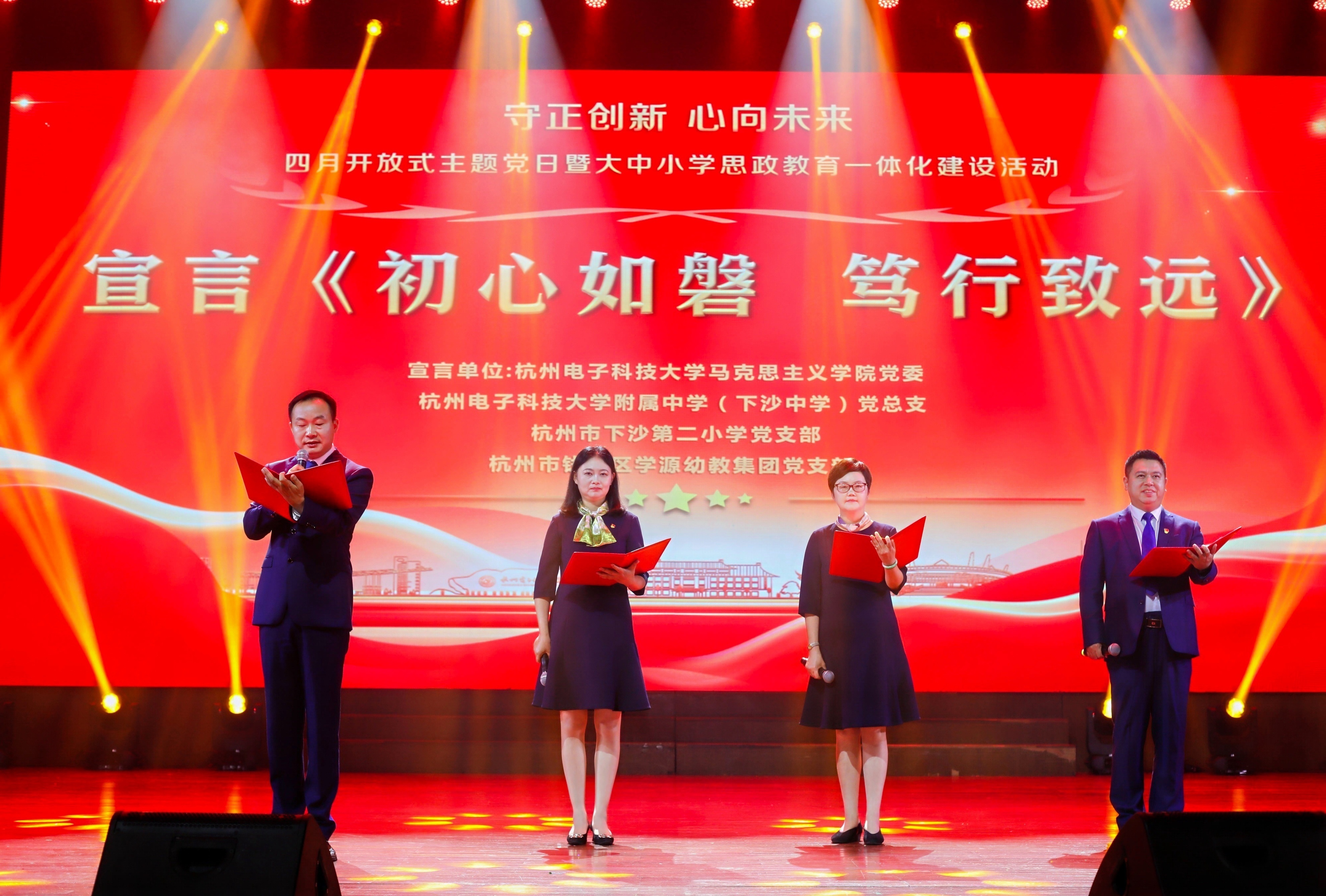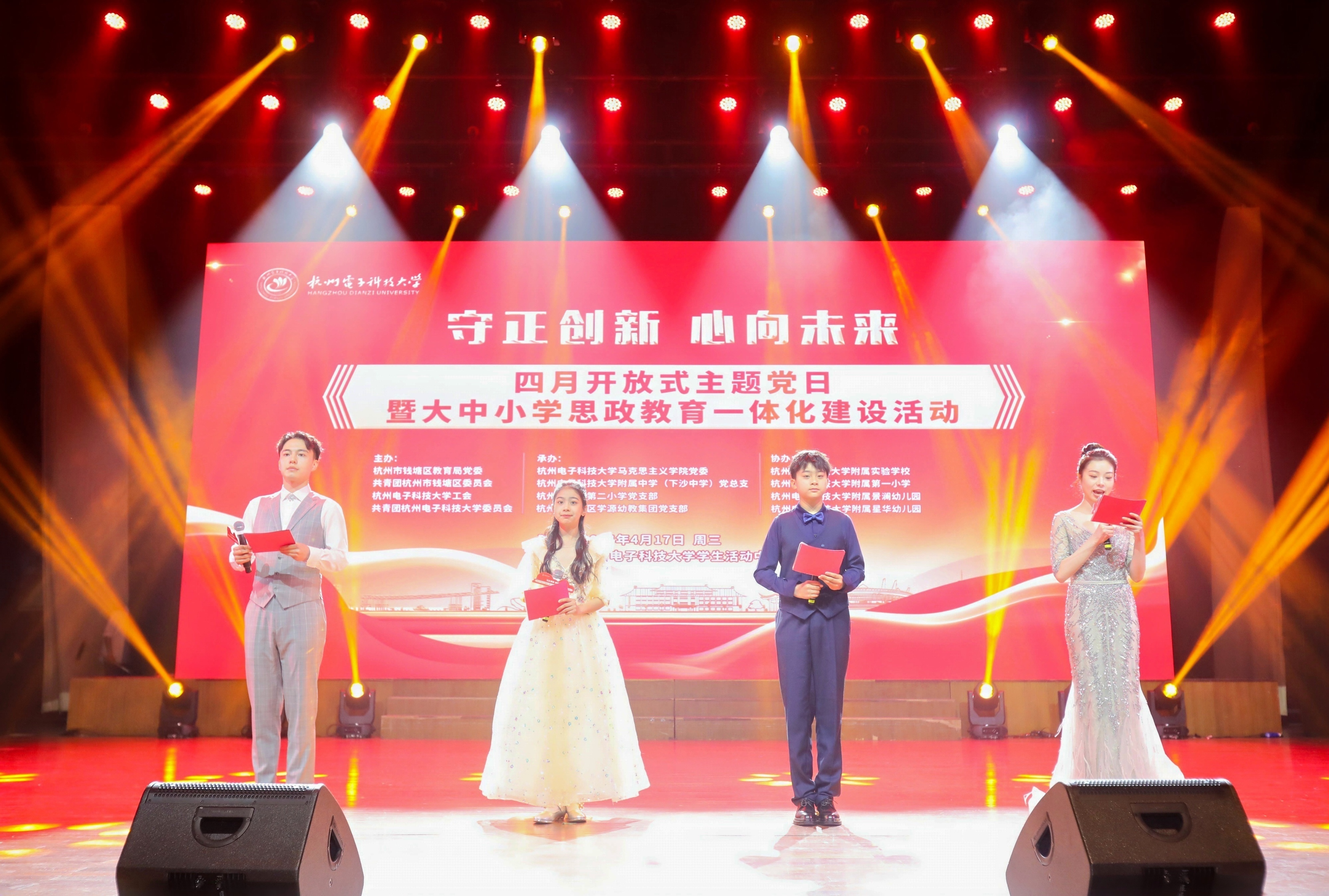 为深入贯彻落实习近平总书记关于推动思政课建设内涵式发展的重要论述精神,推进大中小学思想政治教育一体化建设,4月17日,“守正创新 心向未来”四月开放式主题党日暨大中小学思政教育一体化建设活动在学校学生活动中心剧院举行。校党委书记吴卿,校党委副书记钱波,校党委委员、宣传部部长陈云,校党委委员、组织部部长孔万增,杭州市钱塘区教育局党委书记,局长吴波,教育局一级调研员李跃清,共青团区钱塘区委副书记易晨曦,浙江革命烈士纪念馆副馆长万晓青,以及来自钱塘区教育系统各中学、小学、幼儿园师生代表,我校附属中小学代表800余人参加此次活动。