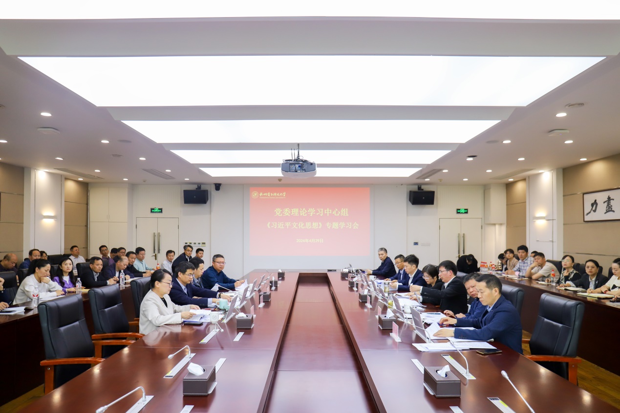 4月29日上午,校党委理论学习中心组举行扩大会议,专题学习研讨习近平文化思想。校党委书记吴卿主持会议并作讲话,校长陈积明讲话。校党委理论学习中心组成员、各二级党组织书记、党群部门负责人参加本次专题学习会。