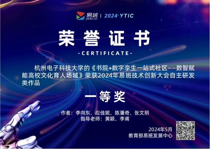 5月27日上午,我校研发的精准思政数字孪生校园项目《书院+数字孪生一站式社区——数智赋能高校文化育人场域》荣获2024年全国高校易班技术创新大会自主研发类评比一等奖(全国唯一)。