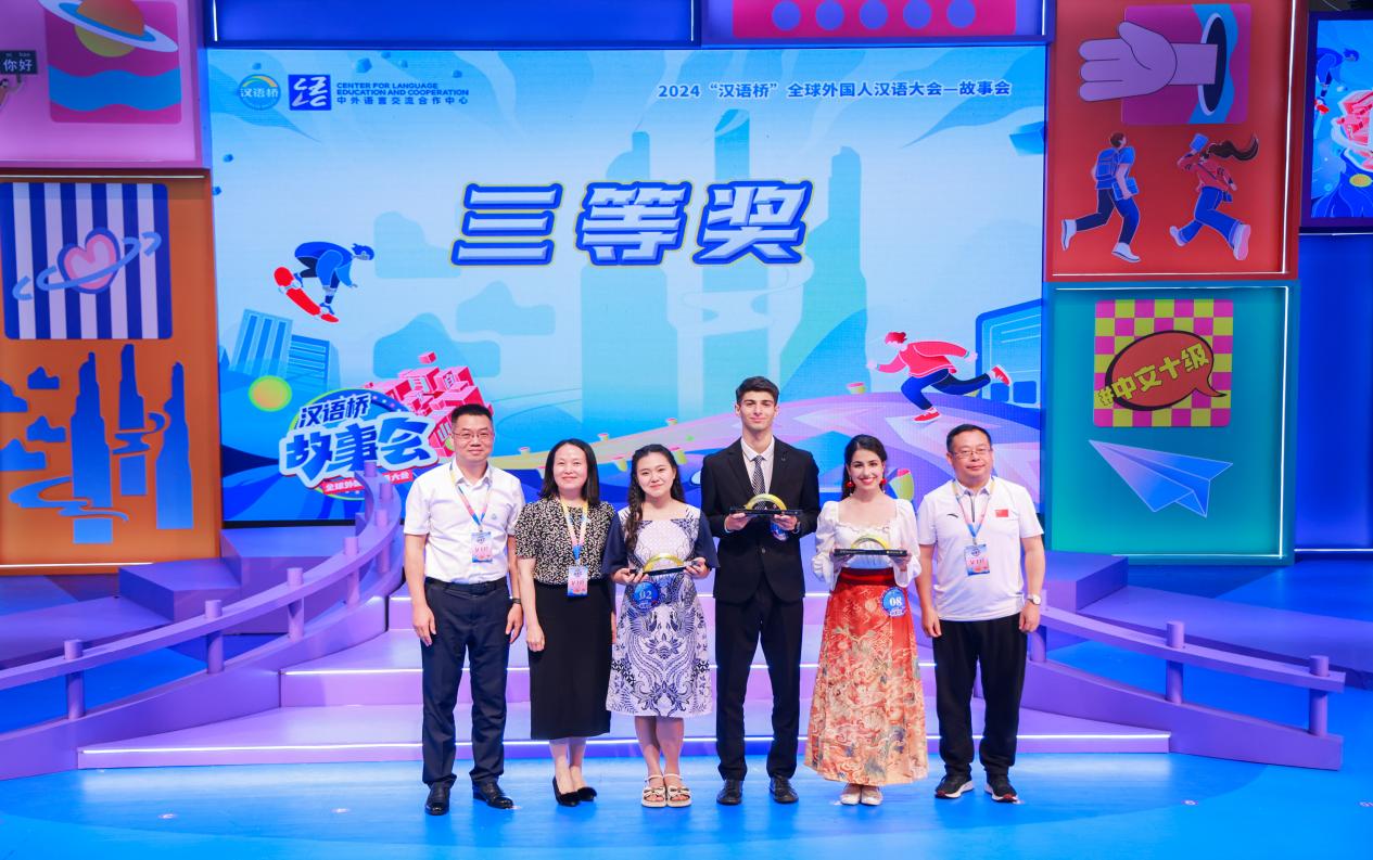 近日,第二届“汉语桥”全球外国人汉语大会“故事会”复赛以及决赛暨颁奖仪式在湖南张家界举行。我校通信工程专业2020级印度尼西亚留学生许斐雅(Nasya Khosasi)以优异表现成功晋级决赛十强,最终荣获全球三等奖。此外,我校还获得优秀组织奖。