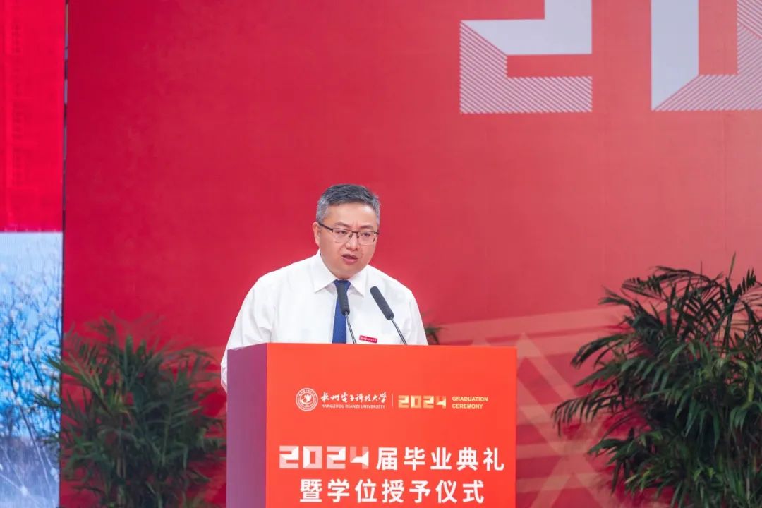 他嘱托毕业生们,要心怀“国之大者”,向内扎根、做不倦求知的奋进者;向上攀登,做引领科技的弄潮儿;向外生长,做拥抱世界的新青年。希望毕业生们能以“国家大事 千万尽力”的杭电情怀更好地读懂中国,以“美美与共 天下大同”的大国智慧去拥抱世界,秉承“笃学力行、守正求新”校训精神,向内扎根、向上攀登,向外生长,与时代同行、与祖国共进,到祖国最需要的地方建功立业,在科技自立自强中书写不负盛世、不负韶华的精彩人生!
