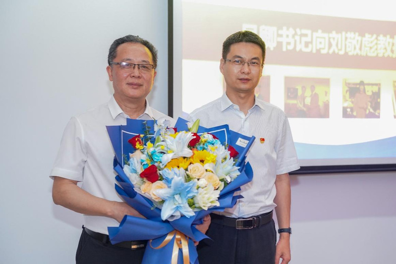 会上,吴卿向今年荣休的刘敬彪教授赠送鲜花并合影留念,表彰其在教育科技领域38年的辛勤耕耘与卓越贡献。周青向由海洋中心青年教师、学生党员组成的东岳党员先锋队授旗,表彰他们在服务学生、校园安全等方面的先锋模范作用。