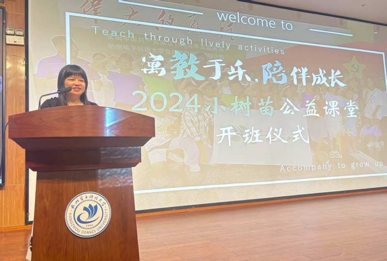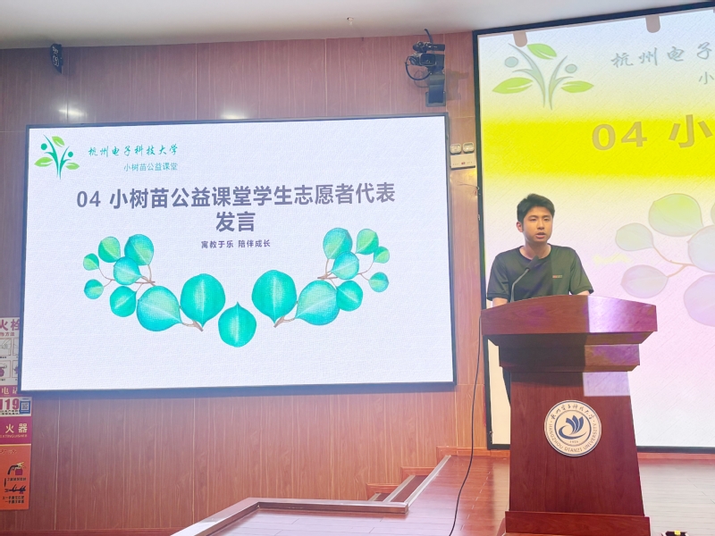 来自电子信息学院的2024年度小树苗公益课堂学生负责人张金正同学介绍了小树苗公益课堂的发展历程和本次小树苗公益课堂的筹备情况、志愿者招募情况、小朋友报名情况及授课计划。他表示,2013年小树苗从后勤职工子女学校开始,到下沙高校的青协团队加入、到文小二工作室的承办;从一对一的课后辅导到课堂辅导、到2020年第一次暑期班;从服务后勤、保卫处子女扩展到了全校教职工子女,离不开后勤服务中心各部门和学校相关部门的关心支持,而工作团队和志愿者们也不负所托,不断丰富课程内容,不断完善规章制度、加强安全教育,更是抱着一颗“感恩的心”来陪伴小朋友们。来自机械工程学院何瑜鑫作为志愿者代表发言。他认为,小树苗一次支教活动,大学生通过在对青少年儿童的寓教于乐的教育中寻找到奉献社会的乐趣,同时也是传承好尊老爱幼的中华优秀传统美德的接力棒。作为小树苗志愿者,不仅肩负着一份特殊的责任和使命,更是爱心的传递和延续。