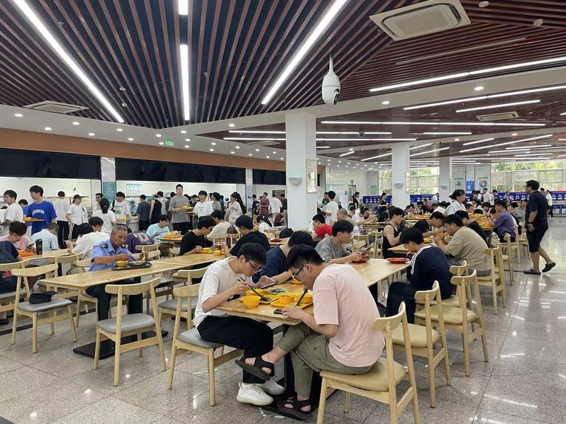 让师生吃得放心、安心、舒心始终是我校后勤人孜孜以求的目标。暑假期间,食堂员工用心烹饪,严把食品安全关,从食品原材料验收、加工到窗口售卖,从回收餐具到清洁就餐大厅,每一环节都严格把关,用心守护舌尖上的安全。除了保障假期近万余名师生员工的日常用餐,值班餐厅还接待各类会议、培训等就餐任务。饮食服务部还利用暑期对第一餐厅进行升级改造,力争在新学期到来之际,为师生员工提供更加安全、优质、舒适的餐饮服务。