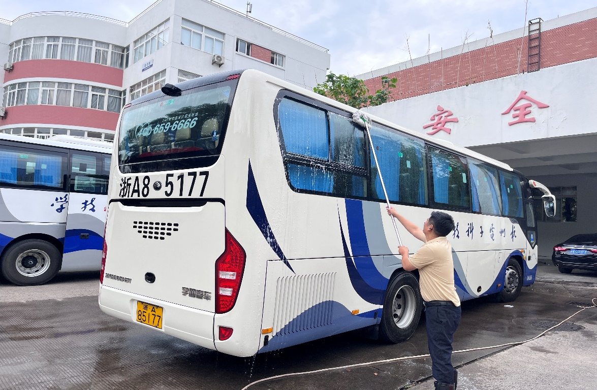 交通组的师傅们顶着烈日、冒着酷暑,与热浪同行。他们按时检查机油、水箱、轮胎,用心做好车辆检查保养。他们手握方向盘紧绷安全弦,穿梭在城市的热浪中,一趟趟将乘客安全送达目的地。