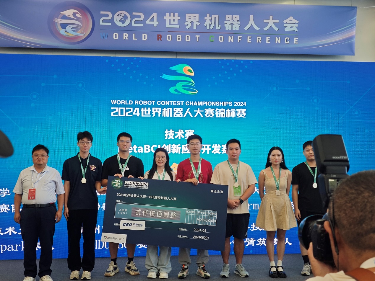 8月21日至25日,由国家自然科学基金委员会指导,中国电子学会、清华大学和基金委信息科学部共同举办的“2024世界机器人大赛—BCI脑控机器人大赛”在北京亦创国际会展中心举行。我校计算机学院脑机协同智能实验室参赛队伍在MetaBCI创新应用开发赛项和面向元宇宙的脑电信号离体生成和检测技术赛项中获得一等奖、二等奖和三等奖各一项的好成绩。