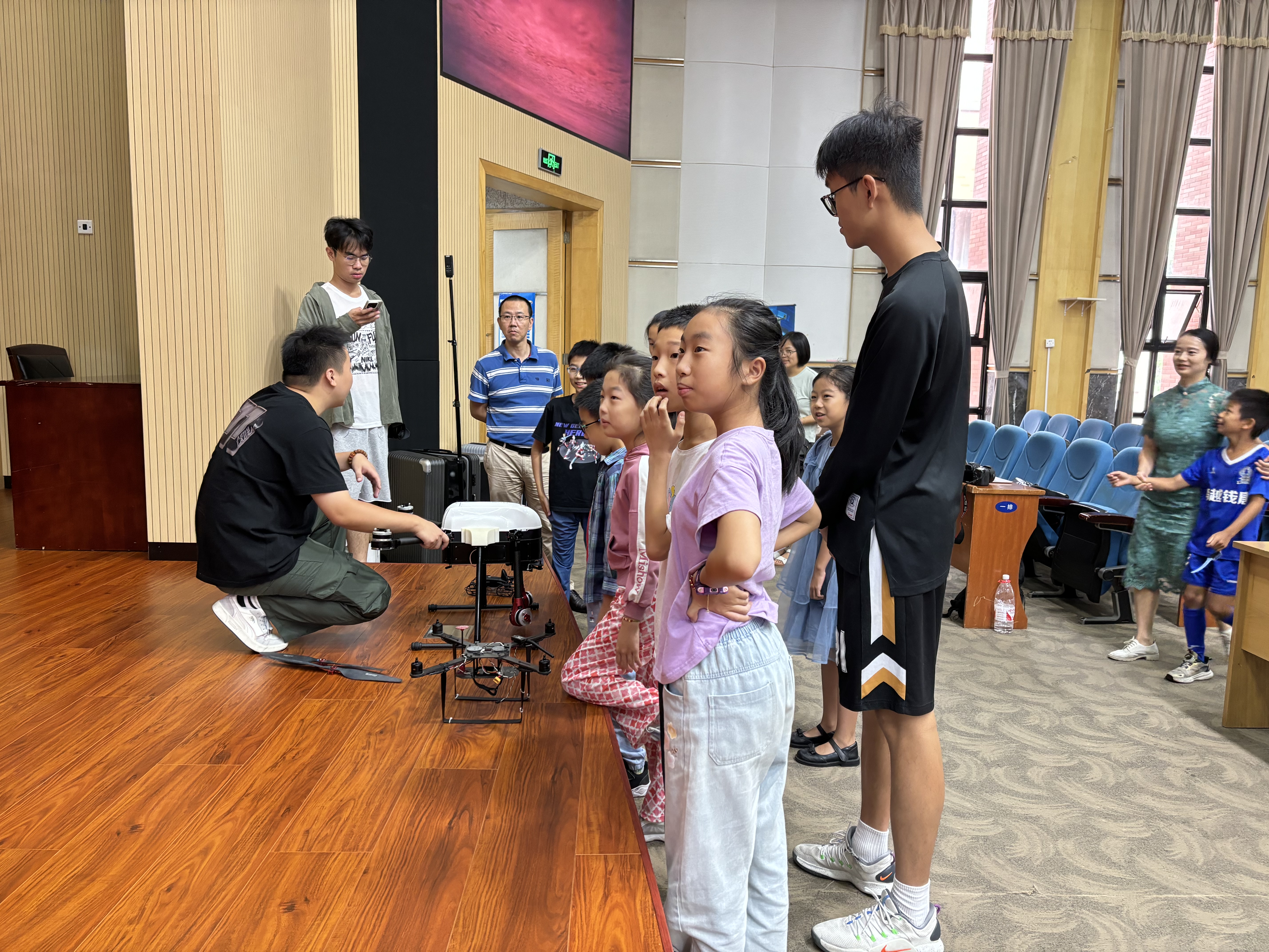 若联智教(杭州)科技有限公司在校内组织了两场无人机探索课,以专精的课程内容、夺目的无人机表演和有趣的无人机实操收获了宝贝们的青睐与教职工的点赞,播下科技探索的种子。活动由电子信息学院分工会和经济学院分工会协办。