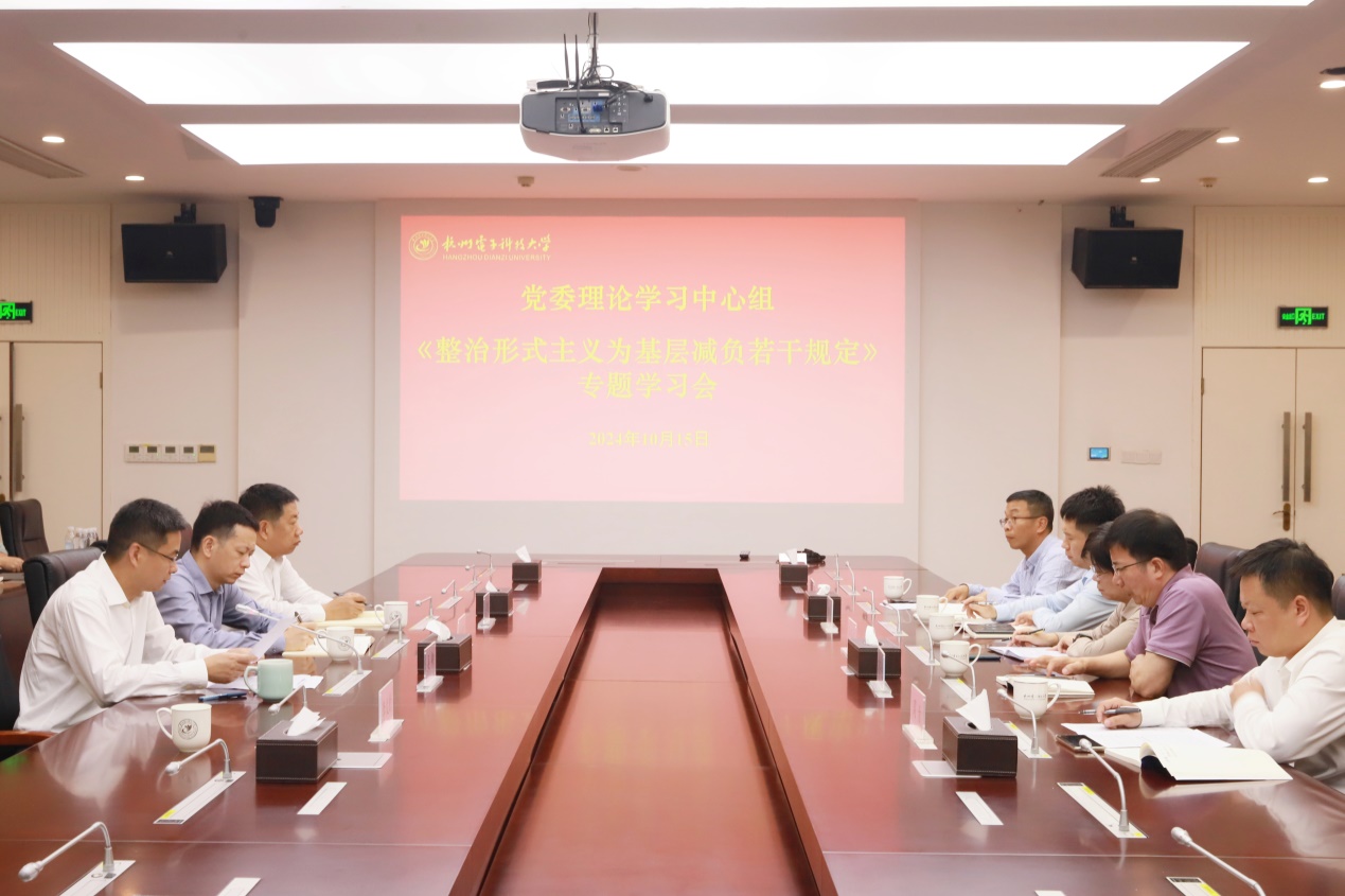 10月15日上午,校党委理论学习中心组召开扩大会议,专题学习《整治形式主义为基层减负若干规定》,研究部署我校贯彻落实工作,校党委书记吴卿主持会议并讲话。