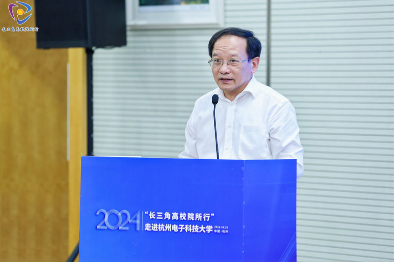 颜成钢致欢迎词,介绍了学校近年来紧密对接国家和地区战略需求,聚焦关键技术领域,取得的显著发展成就。他指出,浙江与安徽山水相近、人文相亲,杭电与安徽省合作密切,共同开展了多项科技研发、人才培养和社会服务工作。期望双方未来继续深化合作,推动前沿科技研发和成果转化,为长三角高质量一体化发展注入强劲动力。