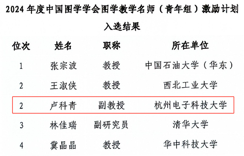 卢科青老师入选“中国图学学会图学教学名师(青年组)激励计划”