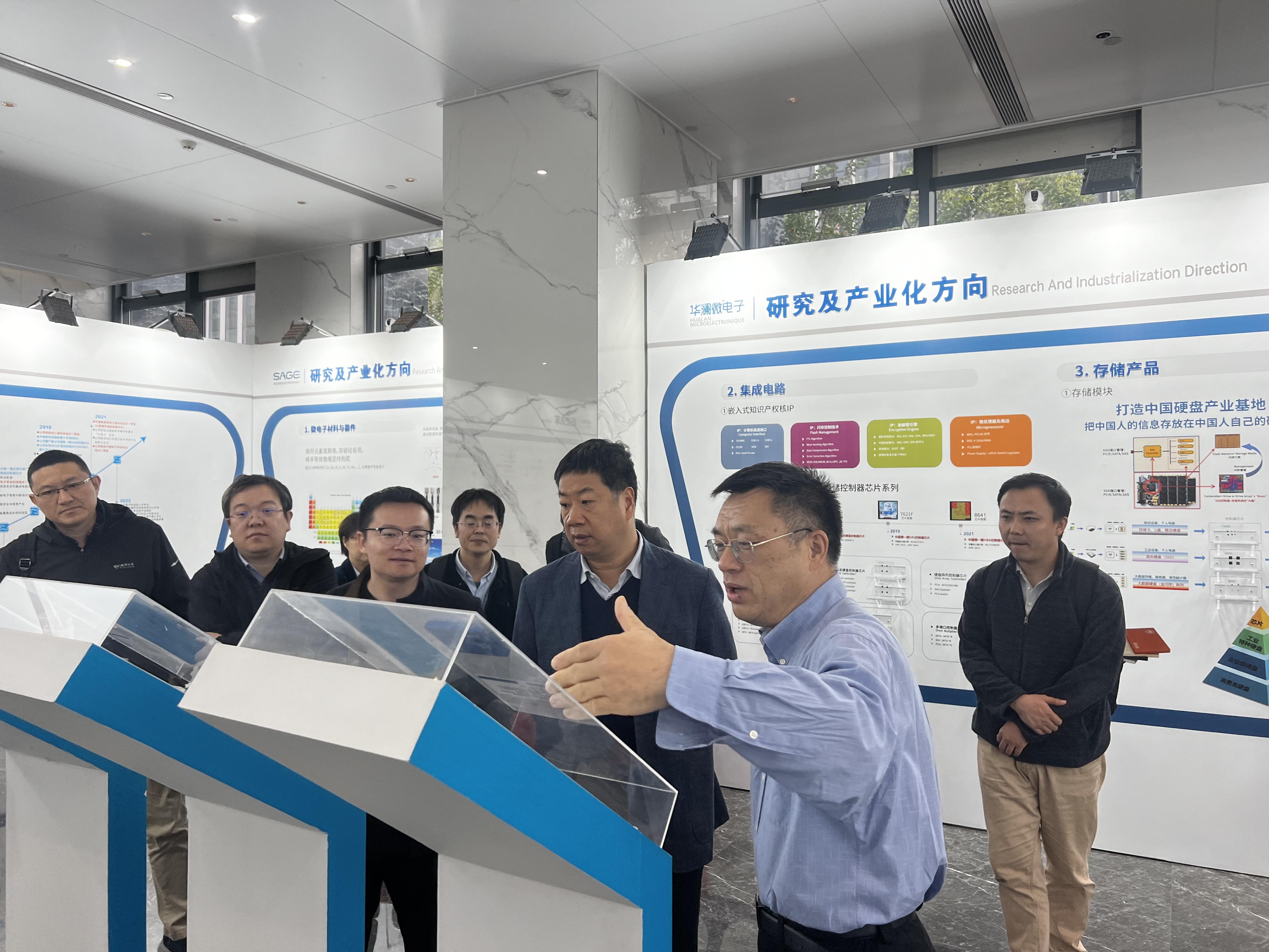 马国进一行首先参观了华澜微的存储阵列、固态硬盘、安全电脑联合实验室等成果展列和实验场所,认真听取了科研人员的讲解和演示。微电子研究院院长骆建军介绍了微电子研究院的情况,计算机学院党委书记金涛介绍了计算机学院的总体情况,各团队代表介绍了团队科研情况,双方就科研合作创新进行了热烈的研讨交流。马国进充分肯定了华澜微“激情创新、用心造芯”的企业精神和在数据存储和信息安全产业领域做出的巨大贡献。他鼓励计算机学院要用心组织,诚意合作,与华澜微开展深入的科研合作与研究创新,力争在科研报奖、大项目培育、产业化落地等方面取得更多的合作成果,推动登峰学科高质量发展。