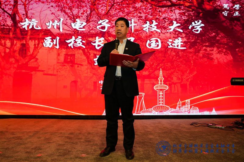 马国进代表学校向到会的校友和嘉宾致以亲切的问候,感谢大家对杭电的关心和支持。他汇报了学校近期在学科发展、科研合作、人才培养、招生就业、国际办学等方面取得的阶段性成果,强调学校正处于冲击下一轮国家“双一流”学科,加快建设电子信息特色鲜明的高水平研究型大学的关键阶段,希望校友们通过校友平台,整合资源,互融互通,与母校携手同行,共创美好未来。