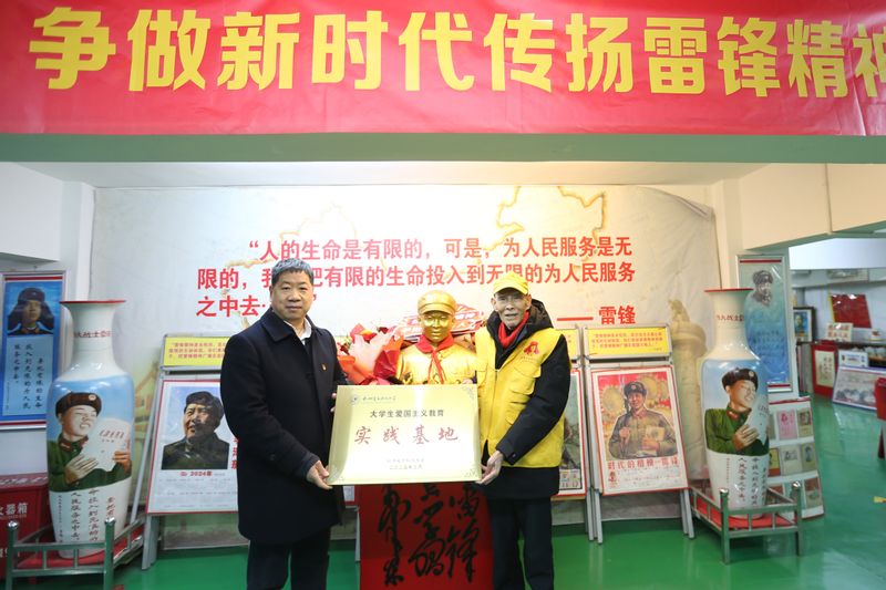 马国进代表学校授予金华雷锋事迹馆“大学生爱国主义教育实践基地”铜牌。“要让展柜里的故事变成青年心中的灯塔,让学雷锋成为杭电学子终生必修课。”马国进强调。