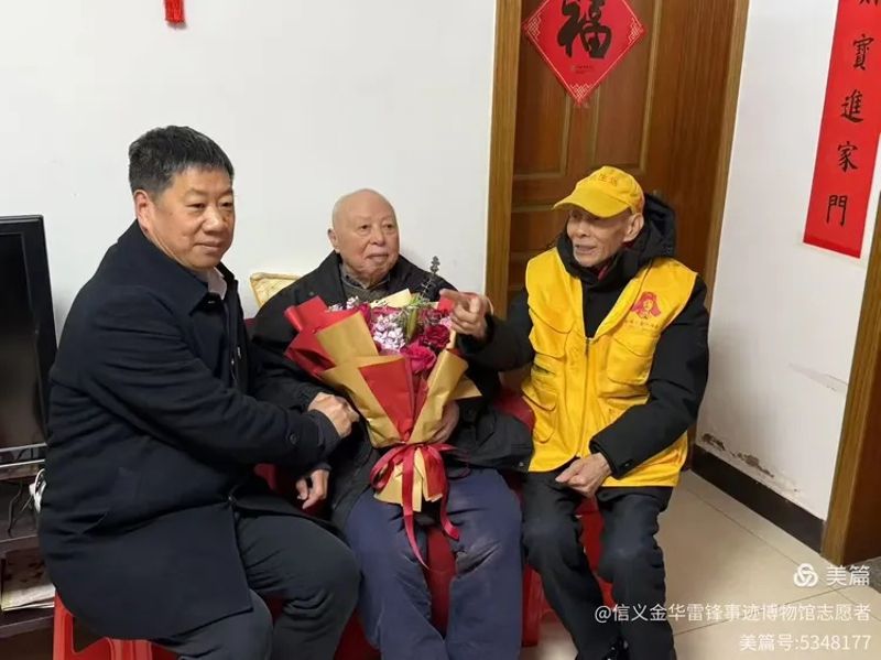 活动最后,曹老陪同马国进一行前往东阳市拜访96岁高龄的雷锋生前老连长虞仁昌老人。两代杭电人为传承和发扬雷锋精神率先垂范的举动,在青年学子心中引发深层思考:为什么要学雷锋?学什么?如何学?