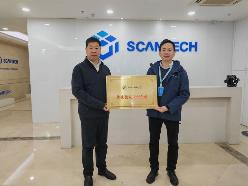 在王江峰等校友的陪同下,马国进一行首先参观了思看科技产品展厅。作为全球三维视觉检测领域的领军企业,思看科技自主研发的高精度3D扫描仪、智能检测系统等产品广泛应用于工业制造、航空航天、文化遗产数字化等领域。王江峰现场展示了核心技术的实际应用场景,其创新成果和行业影响力令母校来宾频频称赞。