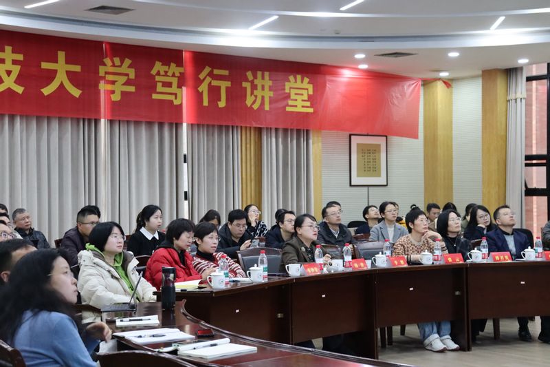 3月12日下午,笃行讲堂第一讲在科技馆扇形会议室顺利开讲,讲座邀请学术副校长李攀教授作《人工智能发展历程与DeepSeek启示》专题报告,校党委副书记钱波,各学院、部处代表参加讲座。