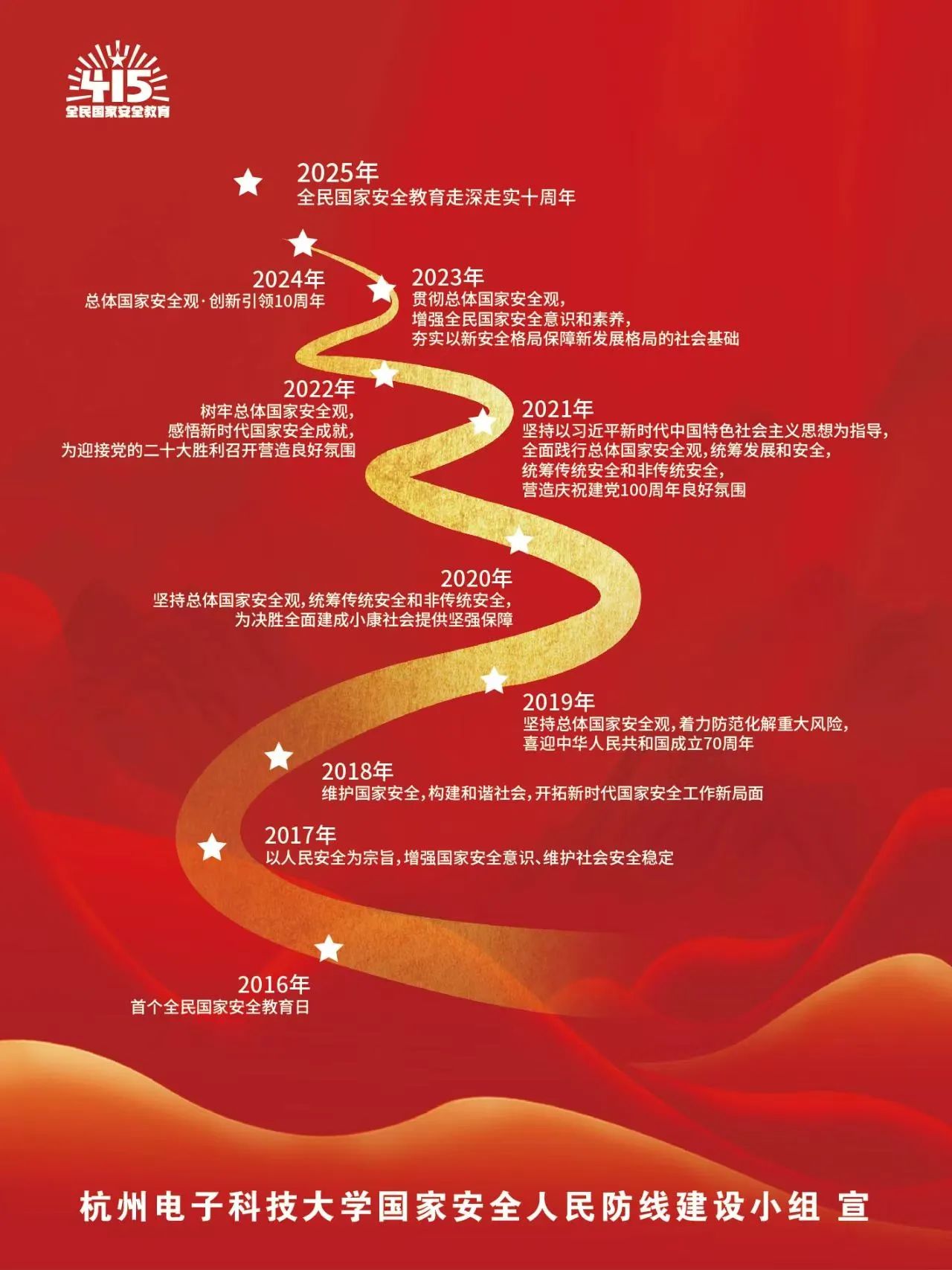 2025年4月15日是第十个全民国家安全教育日,主题是“全民国家安全教育 走深走实十周年”。让我们共同学习国家安全知识,强化责任意识,用行动守护家国安宁。